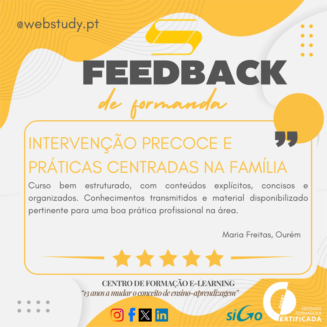 TESTEMUNHO! INTERVENÇÃO PRECOCE E PRÁTICAS CENTRADAS NA FAMÍLIA by Cassilda Queirós Rodrigues - Thursday, 22 May 2025, 5:18 PM Number of replies: 0 Permalink