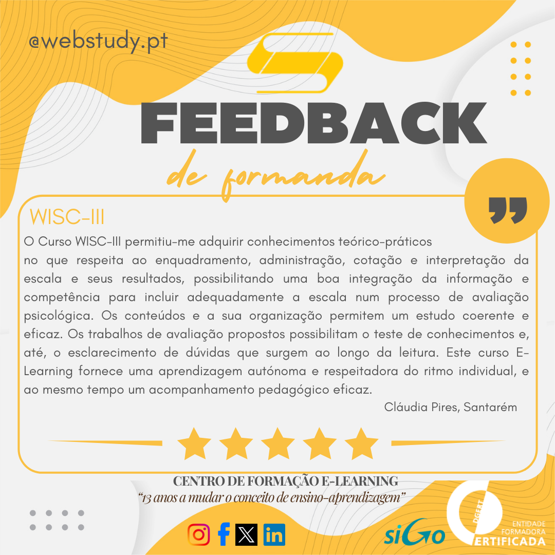 TESTEMUNHO! WISC-III by Cassilda Queirós Rodrigues - Wednesday, 20 August 2025, 5:11 PM Number of replies: 0 Permalink
