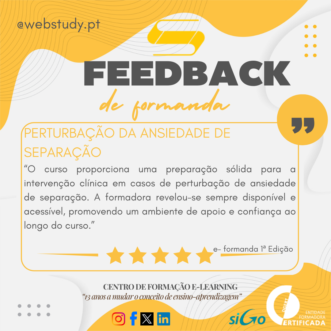 TESTEMUNHO!CURSO PERTURBAÇÂO DA ANSIEDADE DE SEPARAÇÃO by Cassilda Queirós Rodrigues - Wednesday, 17 September 2025, 5:28 PM Number of replies: 0 Permalink